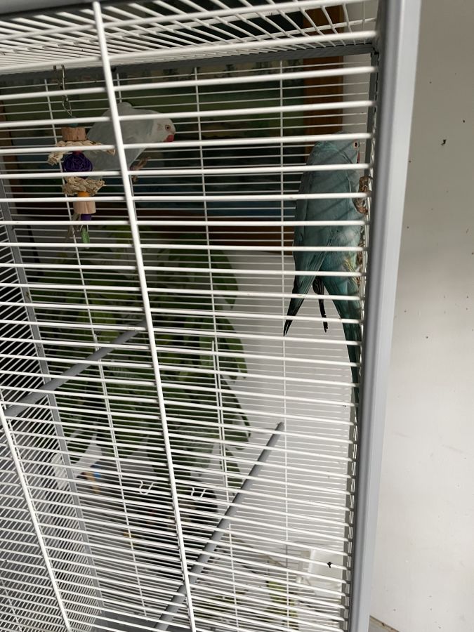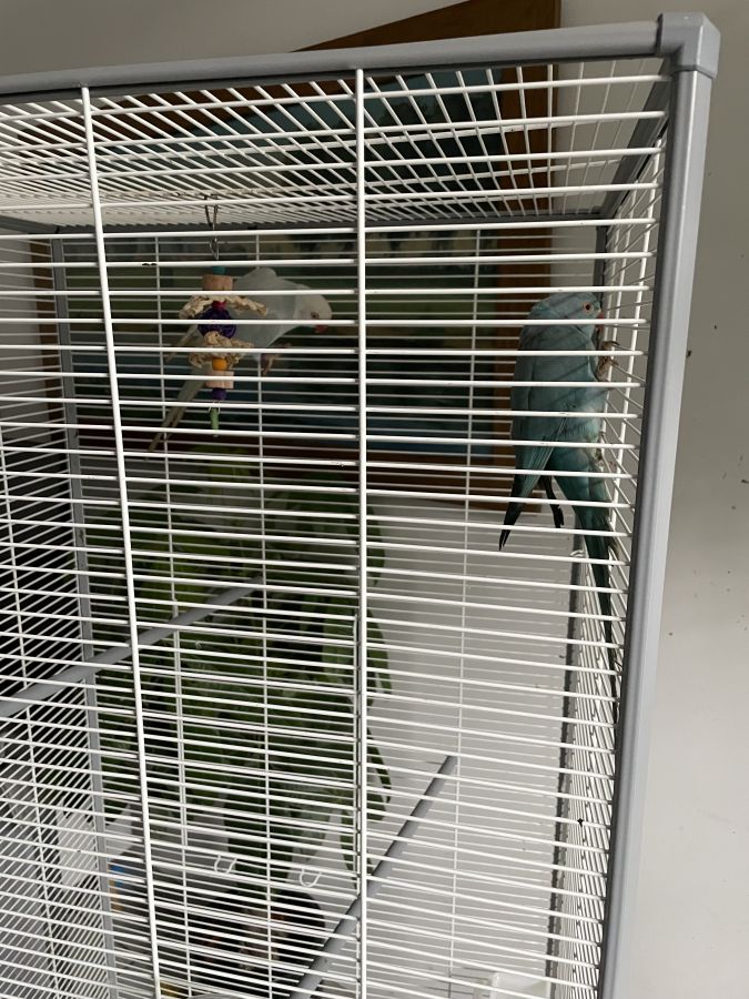 Avec cages Perruche blanc bleu couleur jenti chante