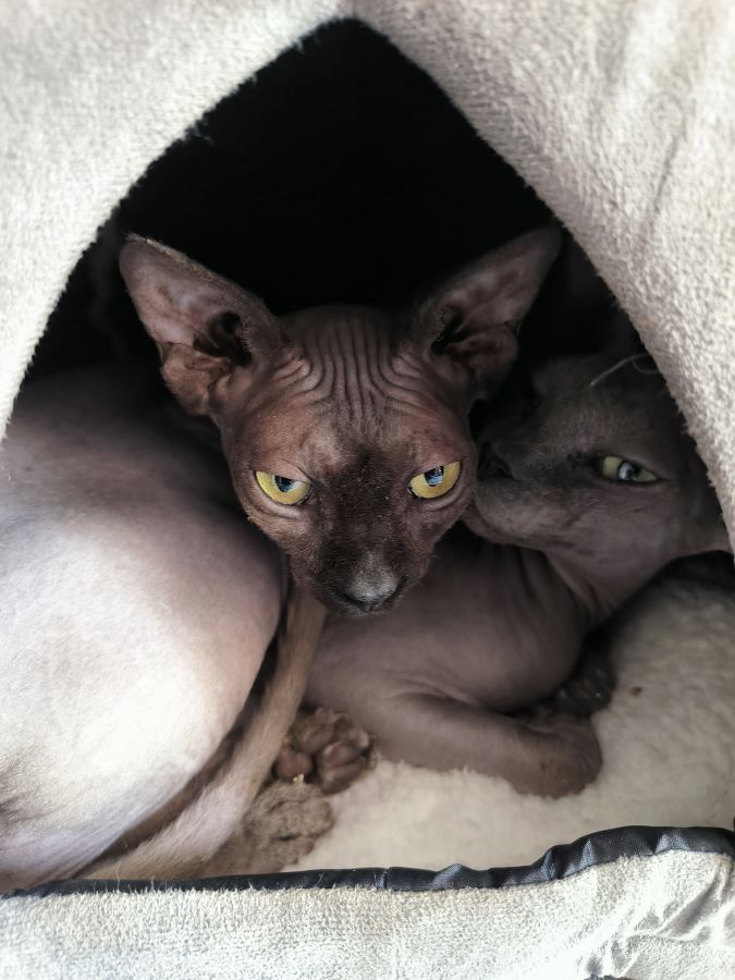 Petit couple de sphynx cherche une famille, je préfère qu'ils partent ensemble mais possibilité de les vendre seuls.