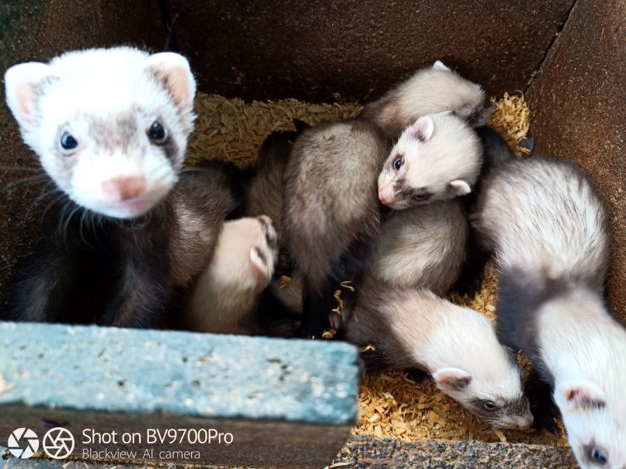 Jeunes furets âgés de 2 mois et demi : 3 mâles et 3 femelles Les parents sont chasseurs