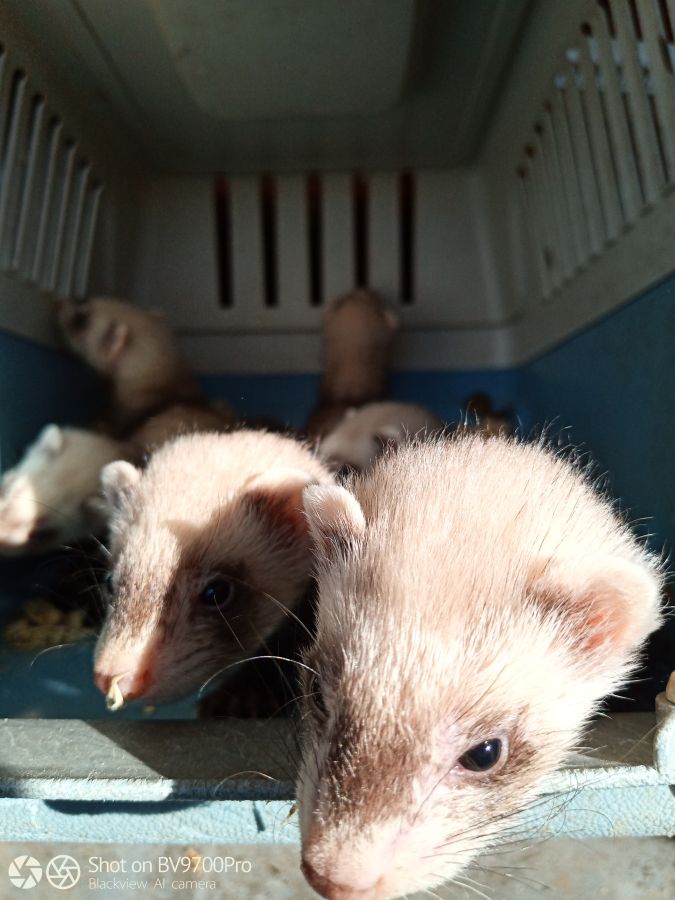 a vendre furet couleur champagne et putoisé avec masque née le 15 mai 2025 il sont dispo a l adoption sevré et e...