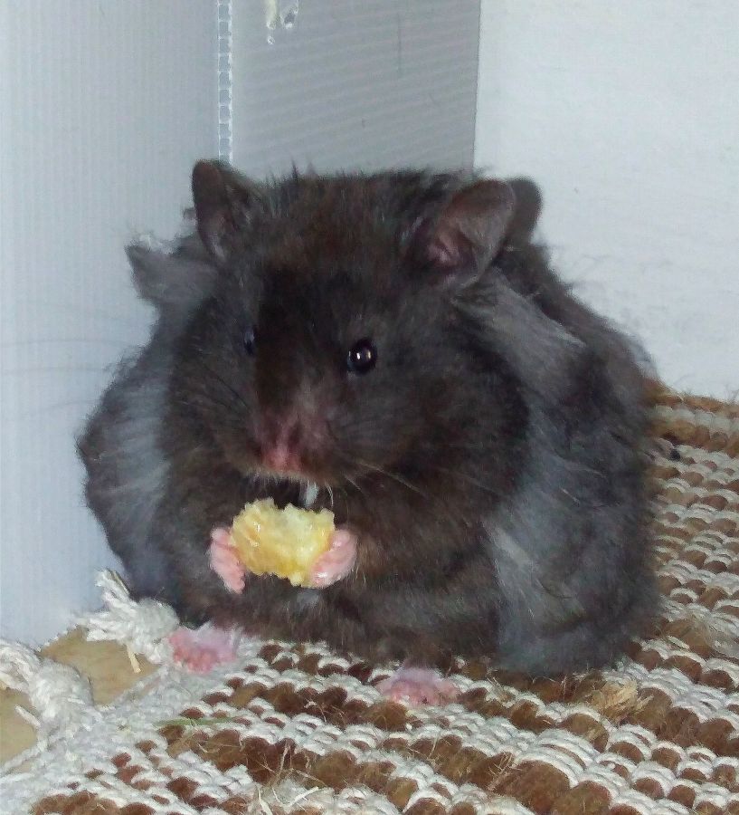 Robert : Hamster syrien mâles Noir 6 mois très gentil et calme.