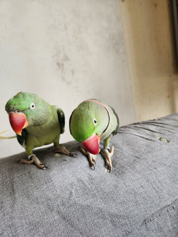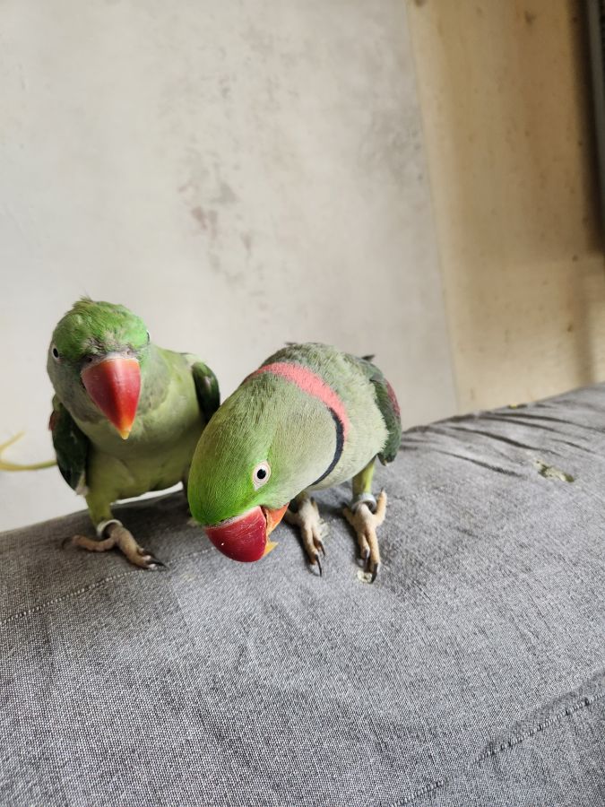 Bonjour je vends couple grand Alexandre avec deux cage grande et petite le mal parle fait des bisous et la femel...
