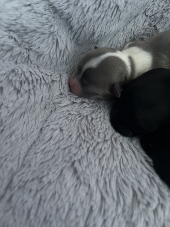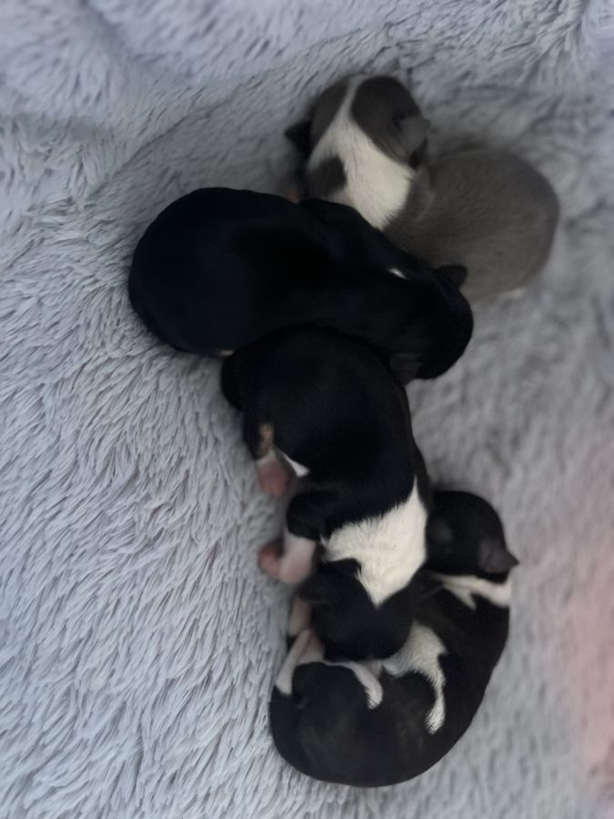 Elles ont déjà une très jolie morphologie. Trois sont noires panachées de blanc dont une avec des bringures légères. Et la 4 eme est bleu panachée de blanc à ce jour.