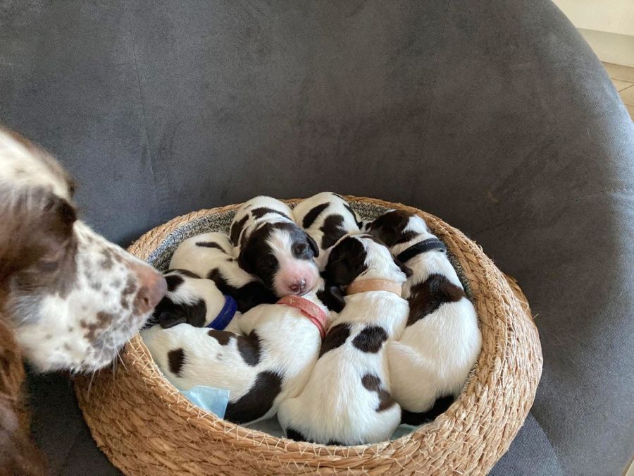 Sur une portée de 16 chiots nous recherchons de bonnes familles pour 3 femelles et 2 mâles nés le 12/06/2025.