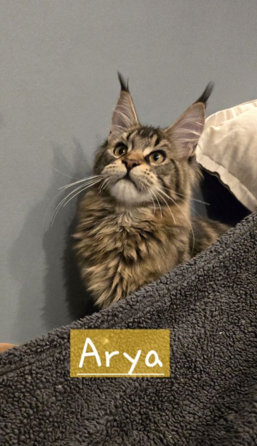 Et voilà, tous ses frères et sœurs sont partis. Mademoiselle Arya est toujours à la recherche d'une famille. Cette petite chipie est très câline, mais aussi très gourmande ! On ne peut pas s'ennuyer avec elle, mademoiselle est toujours dans les jambes, jamais très loin...