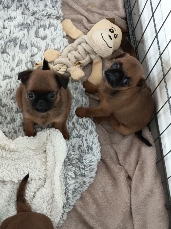 Nous avons 3 chiots Petit Brabançon à vendre. Ils sont sevrés, pucés et vaccinés. Ils sont adorables, mais nous avons déjà 3 chiens à la maison.