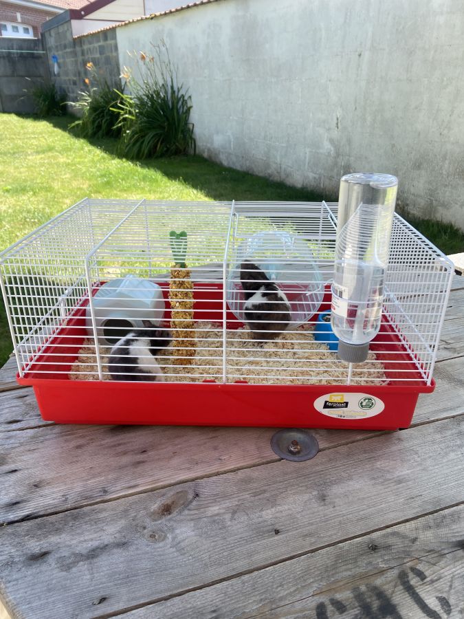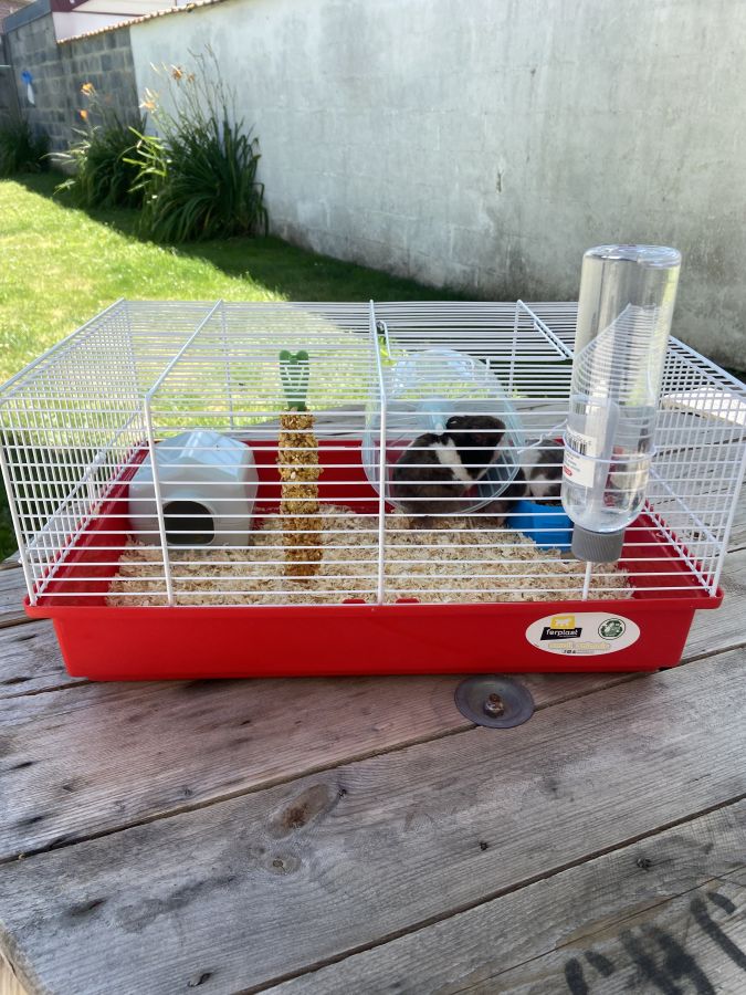Bonjour vend deux hamsters mâle et femelle de couleur gris foncé et blanc acheter 65€ avec leur cage et tout ses accessoires il y as quelques jours à Gamme vert mais mon chien et mon chat n’étant pas d’accord je m’en sépare avec regret , il y as donc avec leur cage et tous ses accessoires pour leur bien être roue biberon gamelle maisonnette et je fourni avec les copeaux le foin leur graines et friandises je vend le tout 40€ premier contact par mail ou sms.