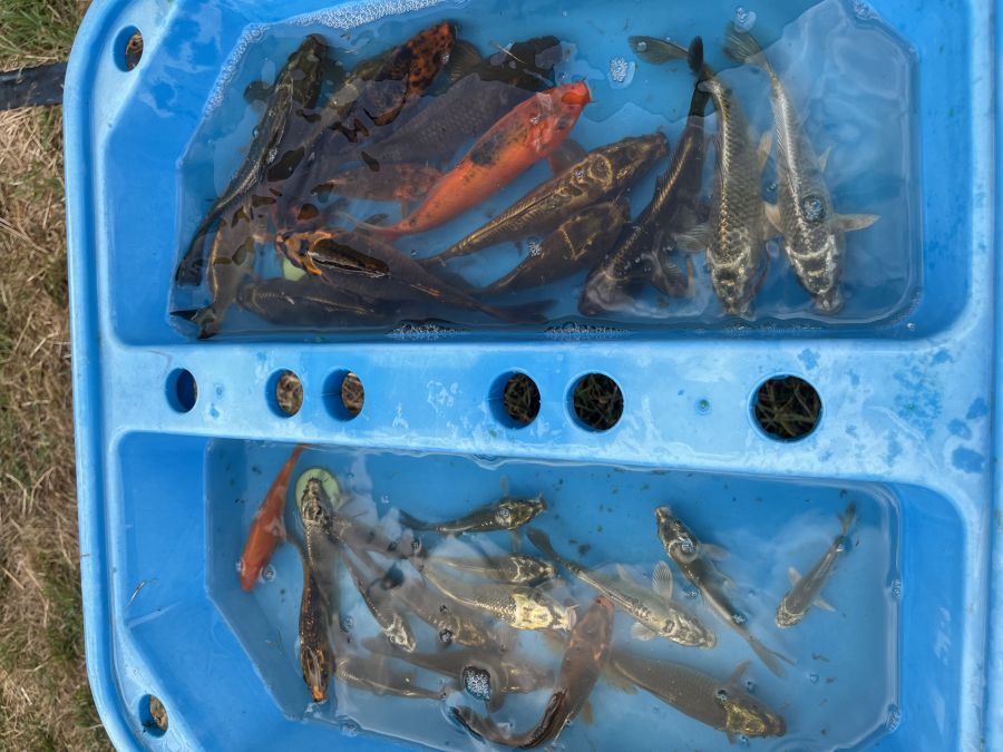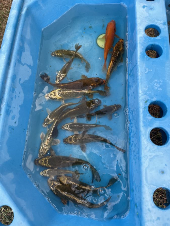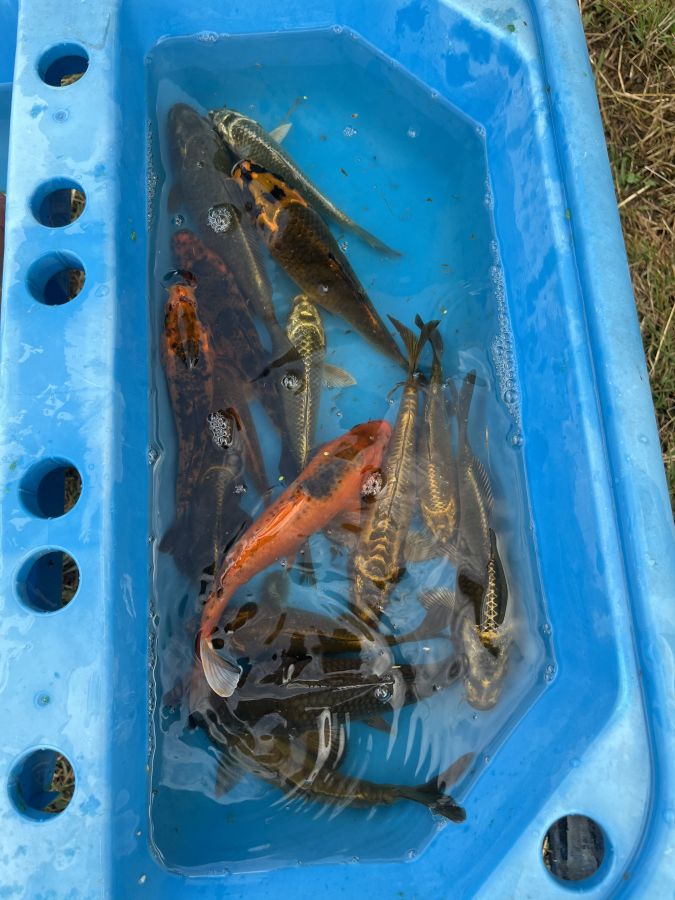 Vends carpe koi cause bassin trop petit la carpe koi et multicolore en pleine santé mesurant 35 cm un beau bébé