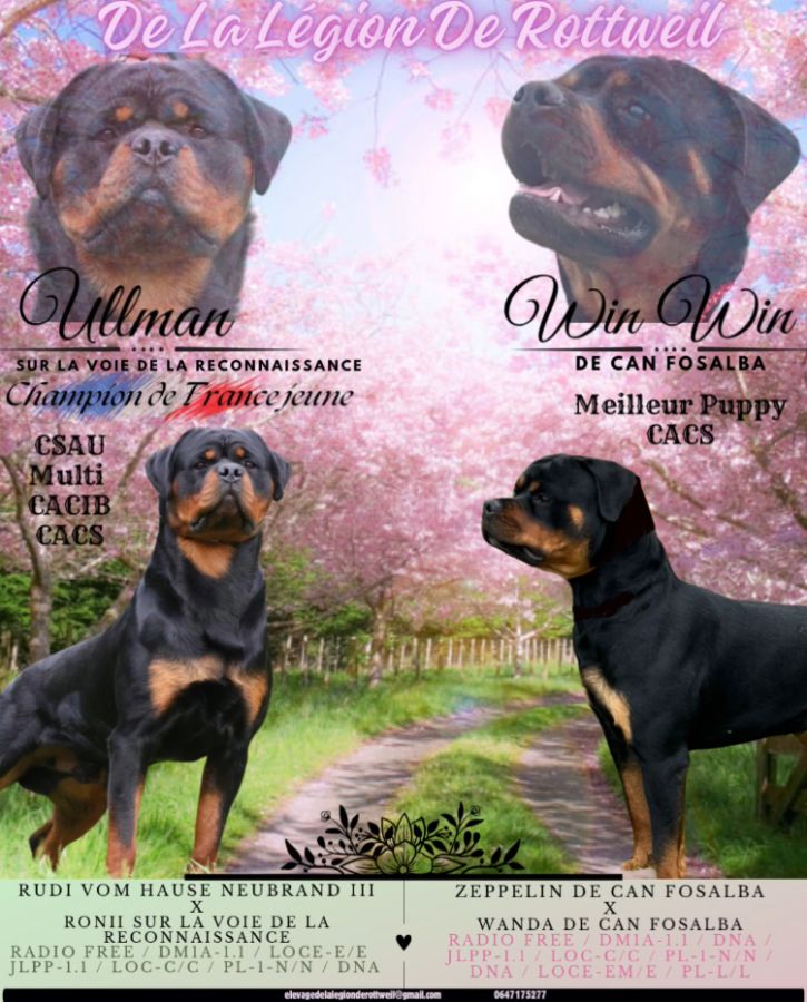 L’élevage de La Légion de Rottweil est heureux de vous proposer à la réservation les bb issus du mariage entre :