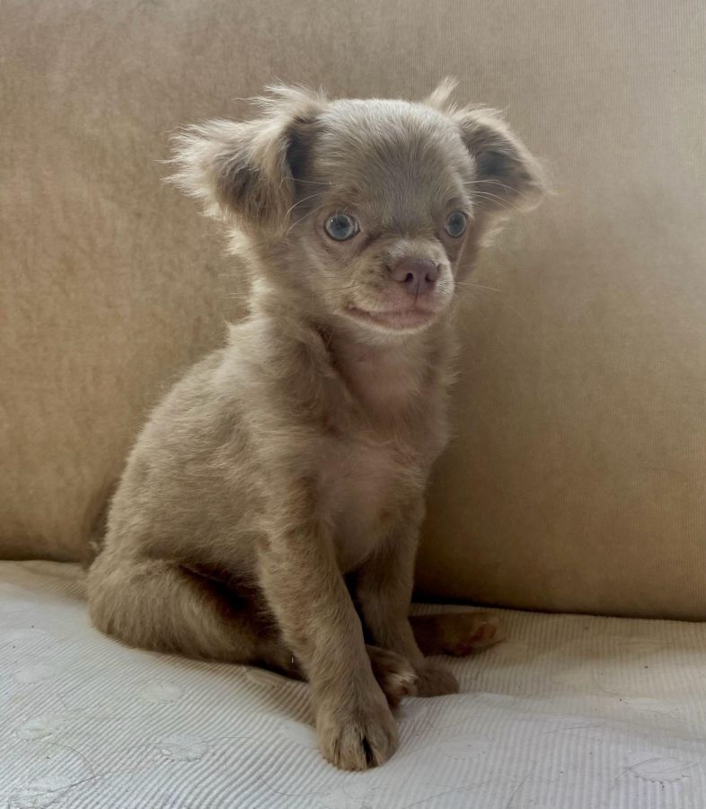 Chihuahua Male de 4 mois, poil long de rare couleur LILAC