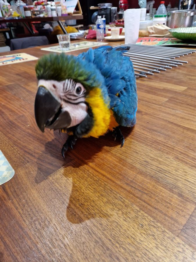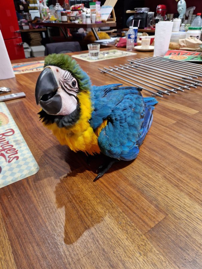 Vends un jeune ara ararauna mâle EAM de 3 mois.