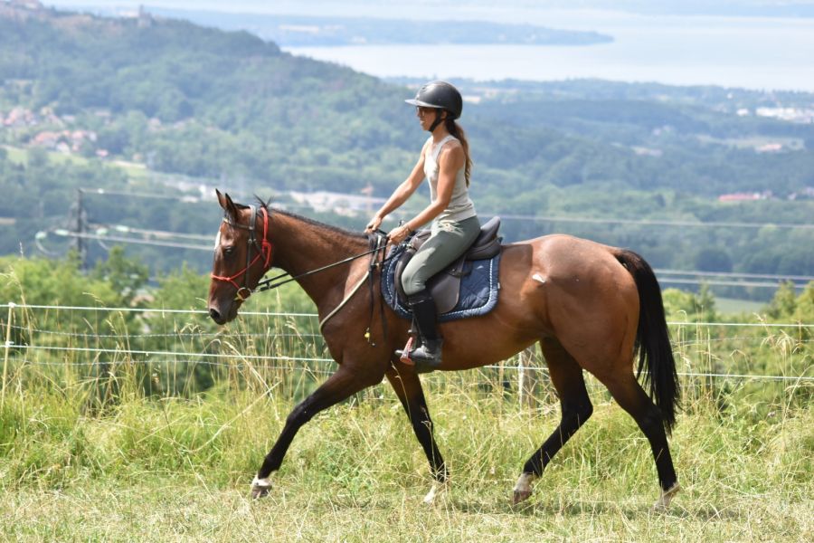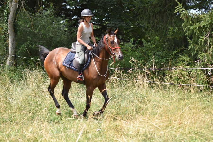 Elle débute actuellement sa nouvelle vie avec beaucoup de bonne volonté. Gentille montée, elle commence le travail sur le plat avec sérieux.
