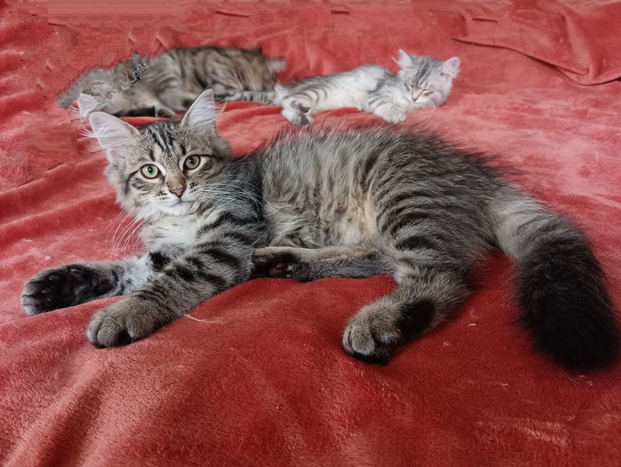 Altaïr chaton mâle né le 1er avril Brown mackerel tabby. Chaton attachant, très câlin, joueur et coquin, une perle. Il est de grande taille avec un aspect sauvage. Il est sevrés, propre, identifié par puce électronique, vaccinés primo et rappel , vermifugé, identifié par puce électronique et STÉRILISER.
