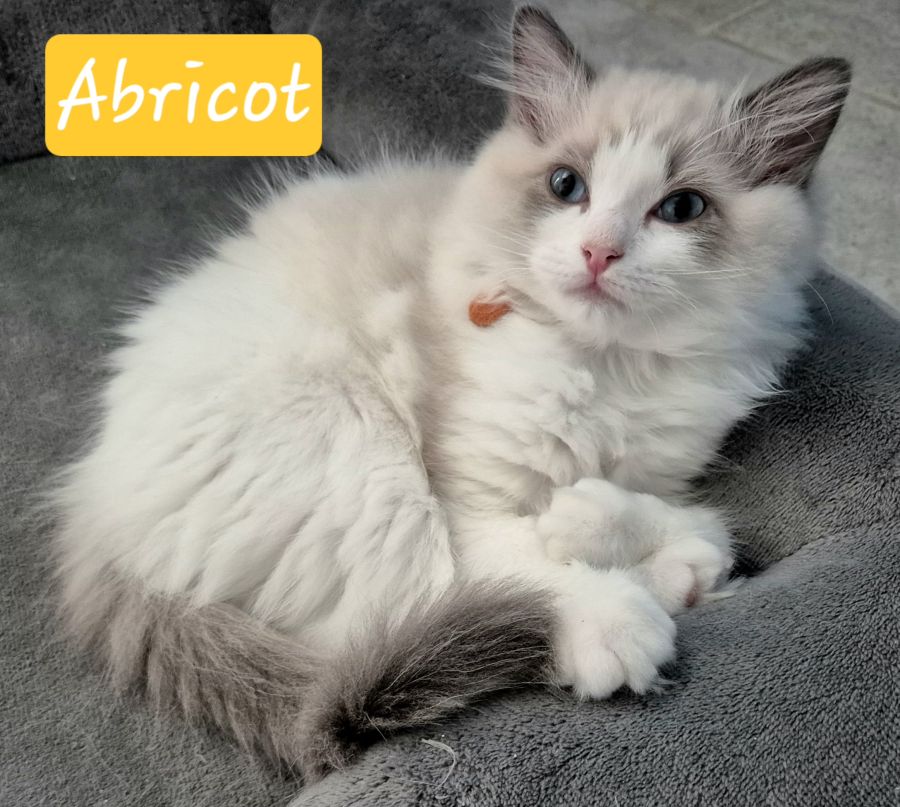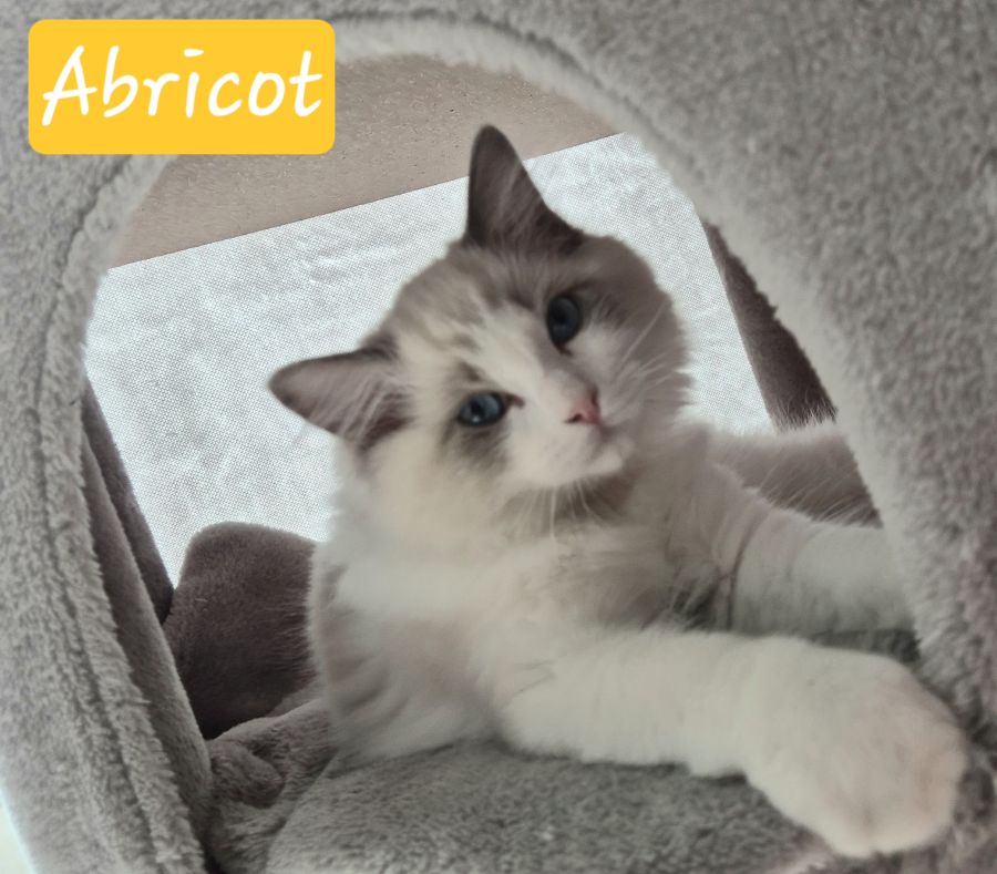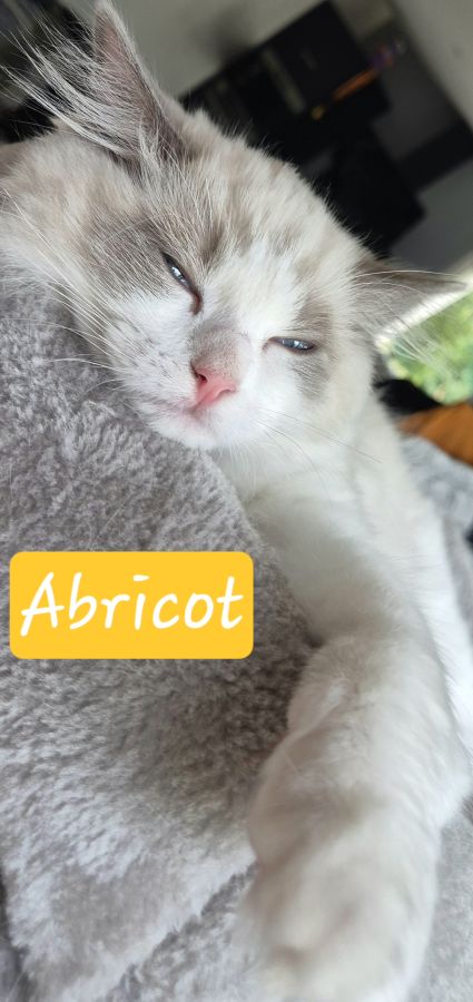 – Abricot : petit ronron ambulant, très câlin, sociable et joueur