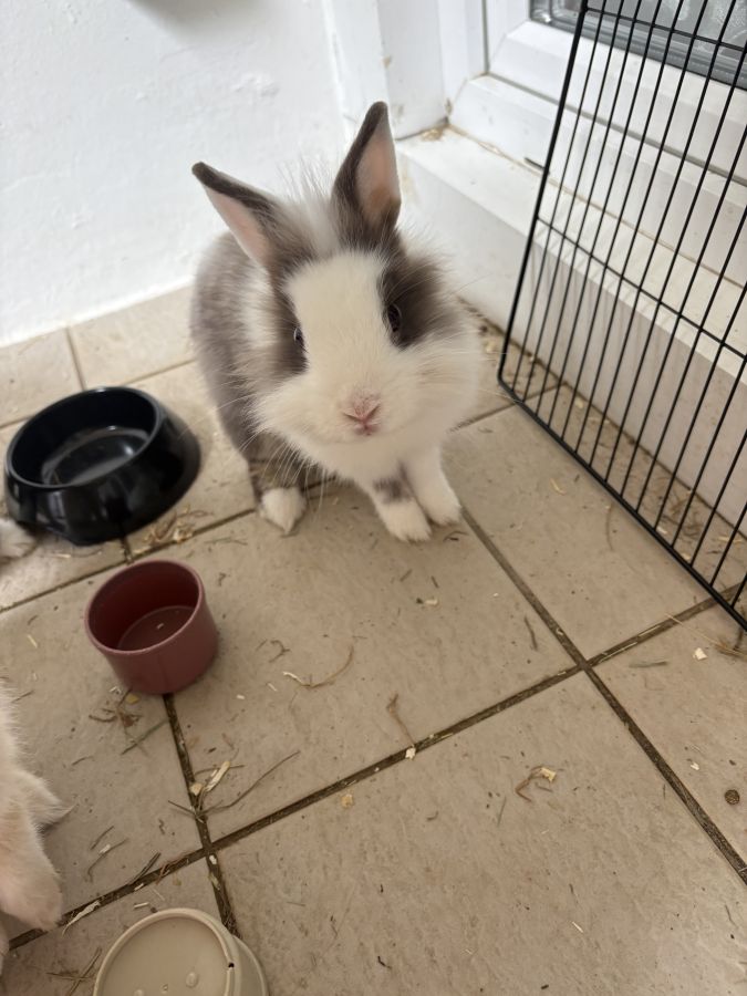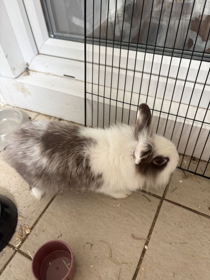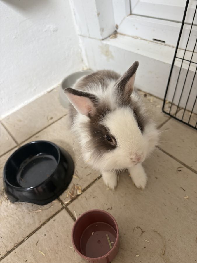 Lapereau nain Angora mâle nommé Pop Corn, habitué à l’homme et aux enfants . Né le 8 avril 2015. N’aime pas être porté mais ne refuse pas les câlins. Très curieux et très malin.