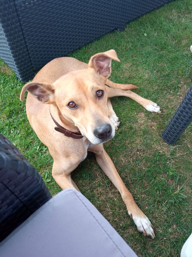 C'est un chien Ok chat ok chien ok enfants. Il connaît les ordres de base assie coucher. Il a besoin de présence et de sortie quotidienne car il aime se dépenser. C'est un chien anxieux il faudra donc le prendre en compte. Il sait rester seul mais il faudra l'occuper. Nous donnerons tout ses accessoires avec lui.
