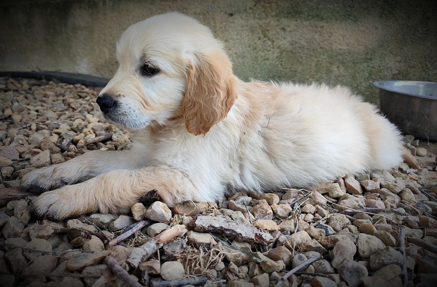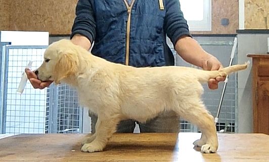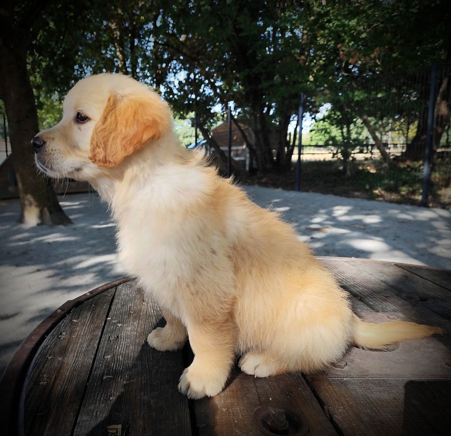Une superbe femelle  Golden Retriever, née le 9/05 au sein d'un élevage professionnel et familial, issue de l'union entre Patton du Domaine d'Hoffmann et de Rush de l'Etang au Miroir.