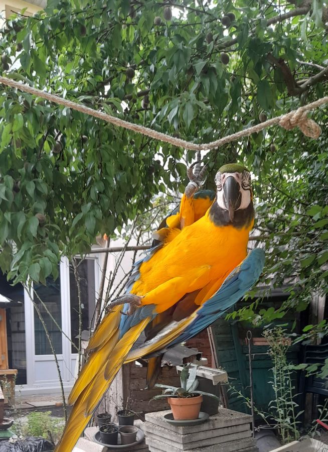 suite a une maladie de ma part, je suis obligé - de me séparer de mes 6 aras jaunes. il y'a un couple reproducte...