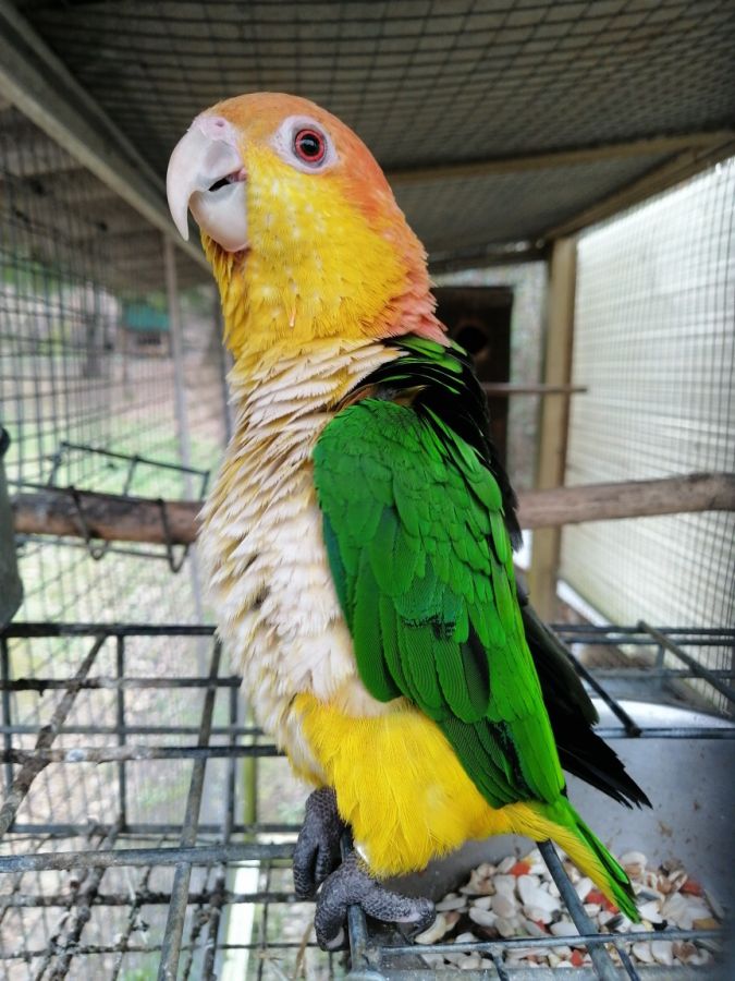 Couple de caïque ventre blanc nés en 2021, pas encore reproduit mais à 4 ans cela ne devrait pas tarder. Probablement printemps 2026