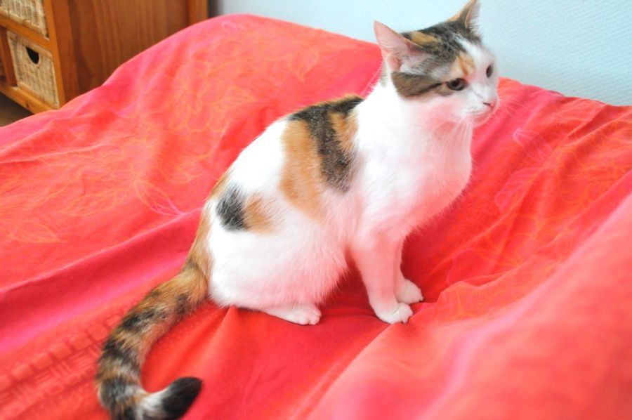 Aimy est une chatte tricolore au tempérament calme, caline. Aura besoin d'un extérieur.