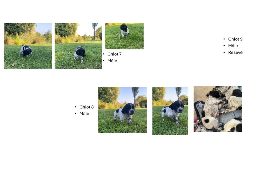Ci-dessous la description de nos 9 Chiots nés le 04/07/2025.