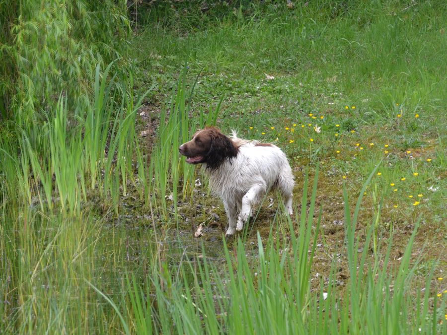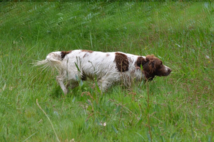 Avec un peu plus d’expérience à la chasse il sera super ! Il est habitué aux coups de feux, il broussaille et cherche à rapporter des oiseaux.