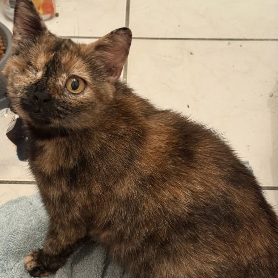 Quand je vivais dehors, j’ai eu un accident… et j’ai perdu un œil 💔. Mais rassurez-vous, je m’adapte très bien et ça ne m’empêche pas d’être une minette câline et pleine de tendresse 😻.