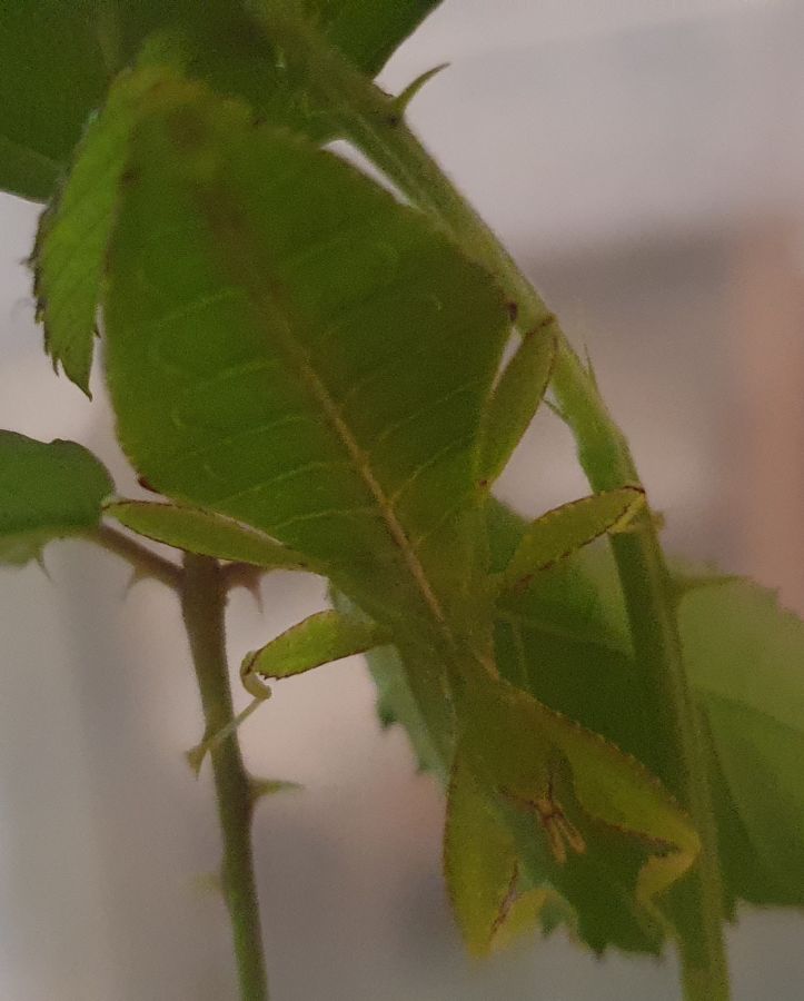 Si vous n'avez jamais élevé de phasmes, il vous faudra investir dans un terrarium (dimensions 30x30x30cm minimum, je conseille 30x30x50cm pour avoir un peu plus de hauteur). Les phasmes-feuilles se nourrissent de feuilles de ronces, possiblement de feuilles de framboisiers, de chêne, de noisettiers (je ne donne que des ronces), il faut donc changer le bouquet de feuilles chaque semaine. Un hygromètre est idéal, mais pas indispensable, il faut juste maintenir une humidité de 70 à 80% (brumiser le feuillage tous les jours, voire plus par temps sec et fortes chaleurs).