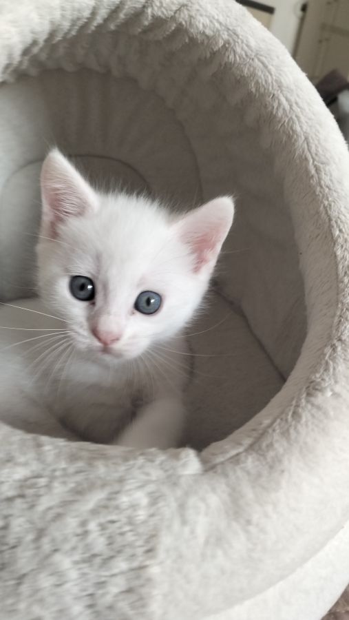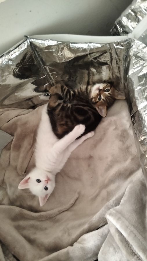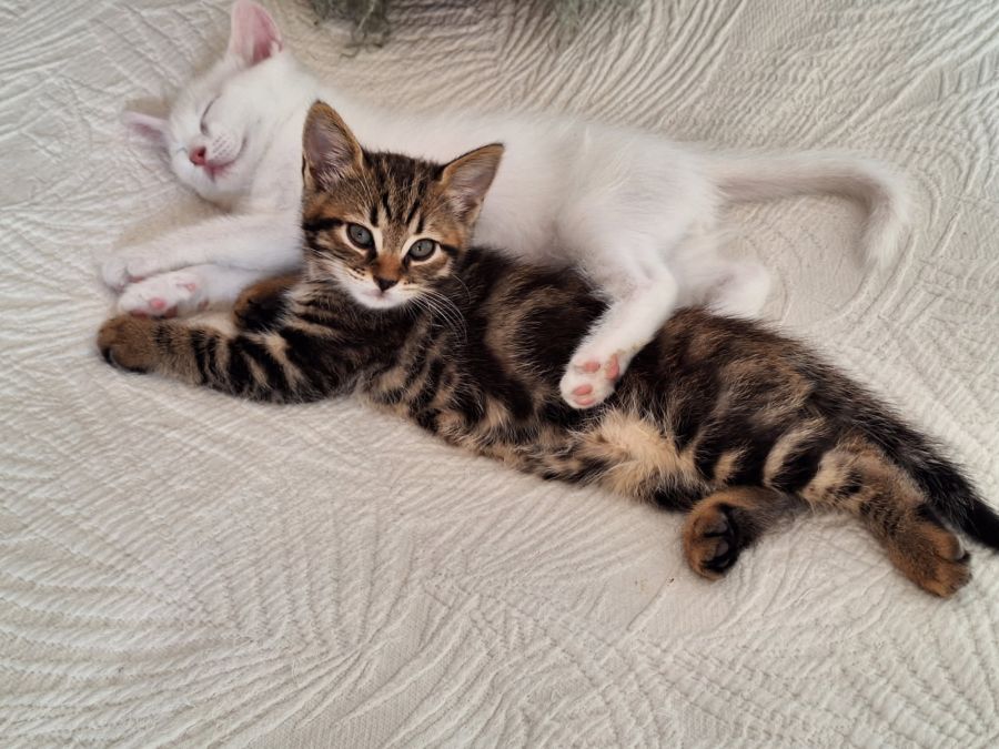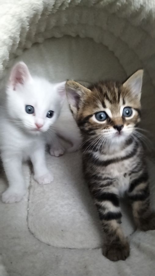 2 chatons males blancs et femelle tigrée 2,5 mois