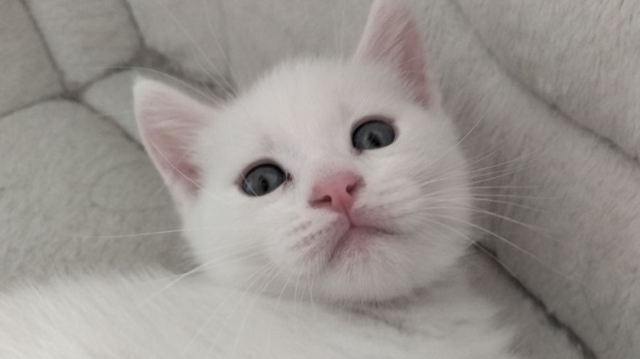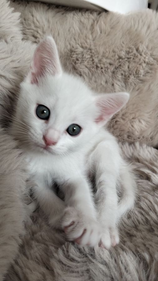 Les chats sont type Angora non loof. Il peuvent avoir le poil mi-long type Angora ou court type British. Les mâles ont eu un poil court avec un caractère similaire au père.