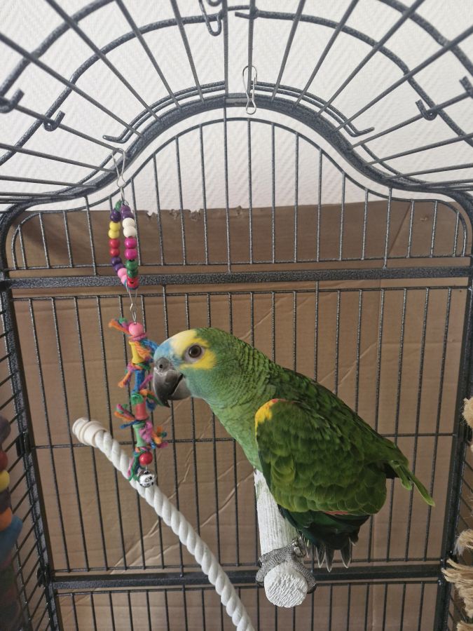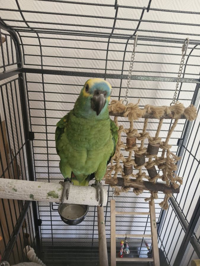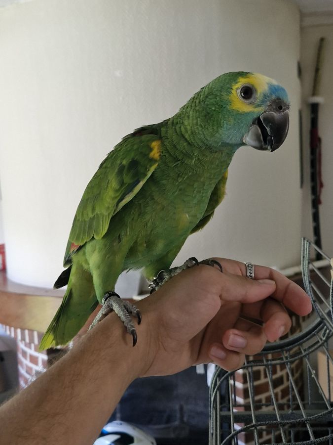 Nous vendons notre mâle Amazone à front bleu, élevé à la main.