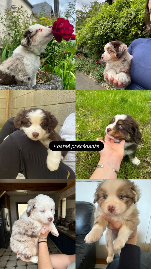 Bonjour !, nous sommes un petit élevage familial qui vous propose une portée de 8 chiots de couleur rouge merle et tricolore. Ils ont tous les yeux bleus et partiront Pucé et vacciné avec un certificat de bonne santé du vétérinaire, ainsi qu’avec leur livret de santé. Les chiots sont inscrits au lof, et les deux parents sont confirmés et testés. Le prix varie en fonction du sexe et de la couleur. Vous pouvez nous joindre par email ou par téléphone, a bientôt !