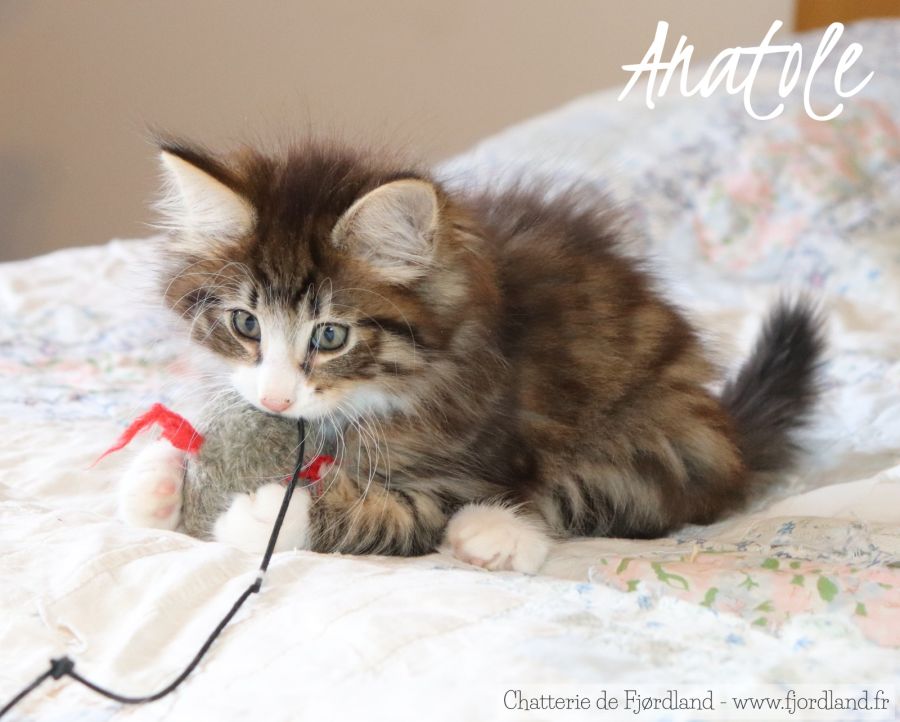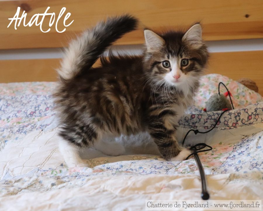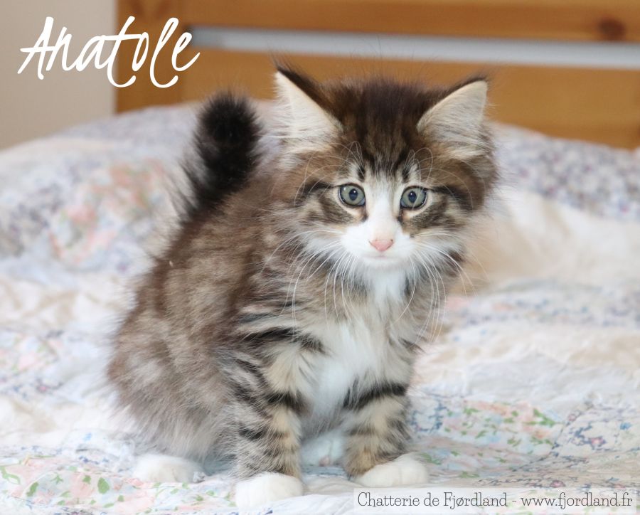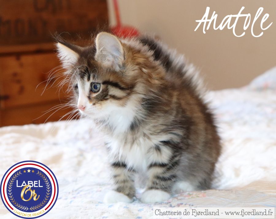 Anatole, né le 4 avril 2025, est un magnifique chaton brown blotched tabby & blanc ! En tant qu'unique chaton de la portée, il profite bien du lait de sa mère et est bien parti pour devenir un grand & majesteux chat Norvégien.