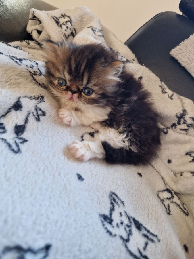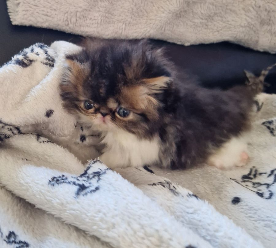 Femelle persan de couleur brown tabby et blanc