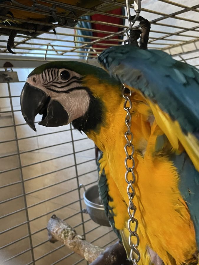 À réserver jeune ara ararauna élevé à la main bague 25 4 mois super apprivoise