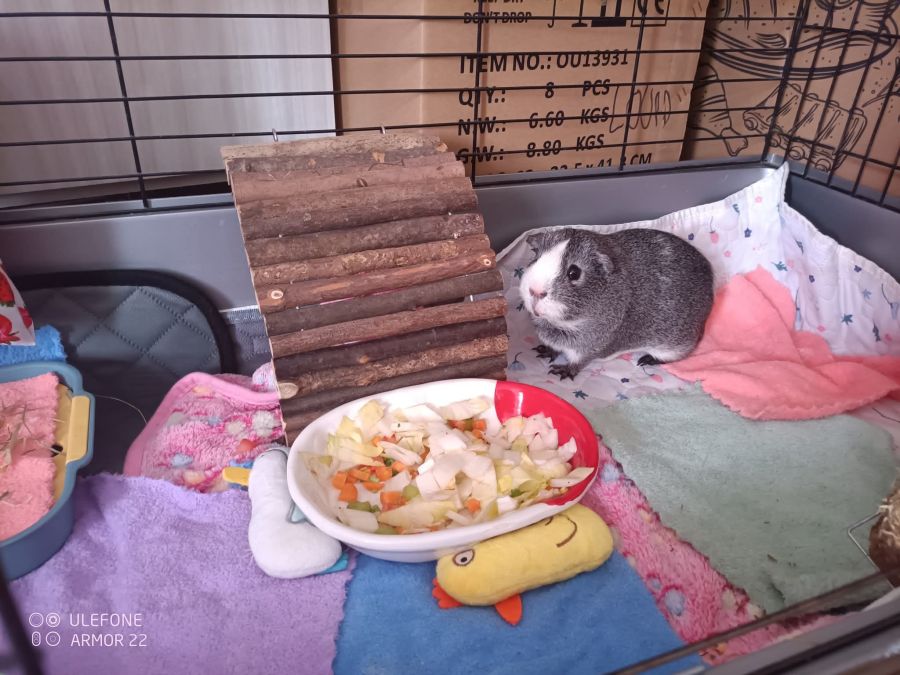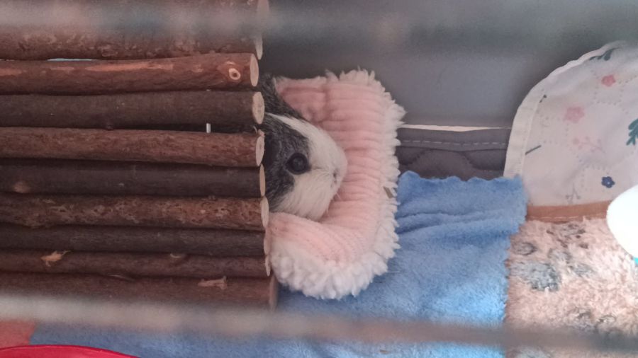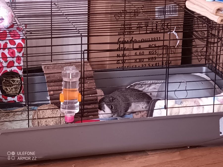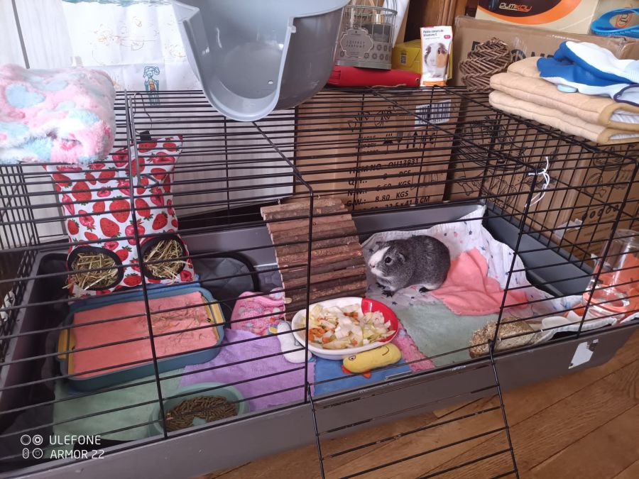 Elle sera plus heureuse avec d'autres cochons d’inde, je n'ai pas la place que je voulais pour elle (je voulais faire un enclos). Je lui ai retiré l’igloo car elle préférait se mettre sous son pont en bois, de plus, l’igloo prend trop de place.