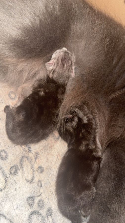 • 1 femelle black blotched tabby très foncé (couleur à confirmer dans les prochains jours, en fonction de son évolution).