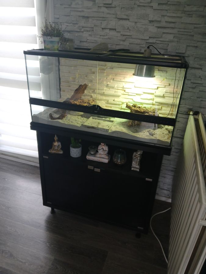 Vend pogona femelle de 2 ans déjà reproduit avec sont terra équipé et sont meuble 180 euros