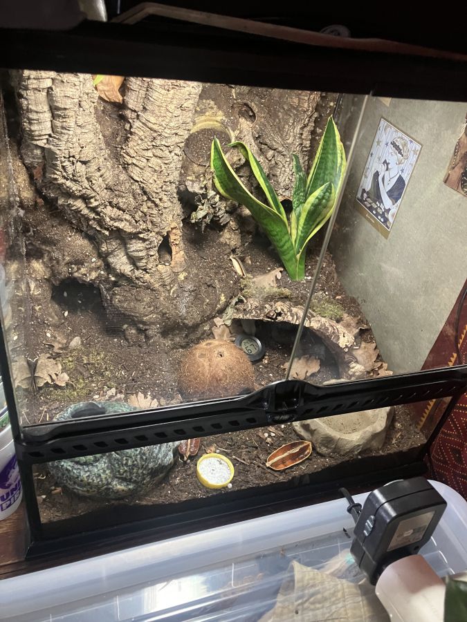 Bonjour, Gecko mâle qui cherche à déménager avec son terrarium exo terra 60x45 tout équipé (cachette, tapis chau...