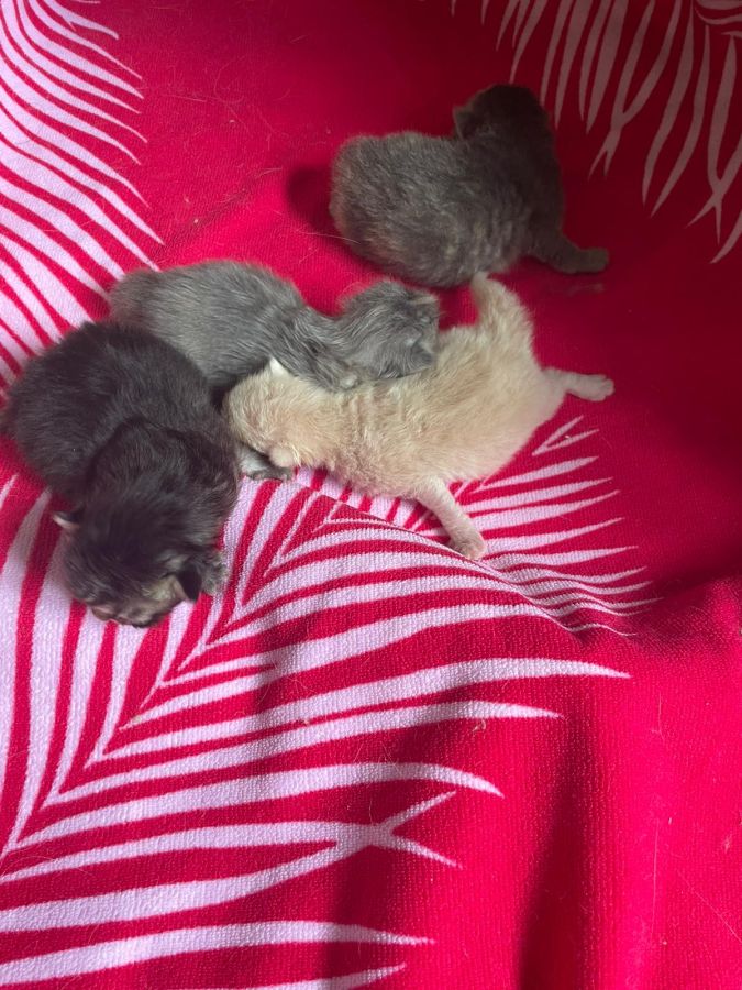 Nous sommes heureux d'annoncer la naissance de 4 chatons. Un seul mâle et trois jolies femelles. La mère les entoure de tendresse tout en ronronnant doucement...