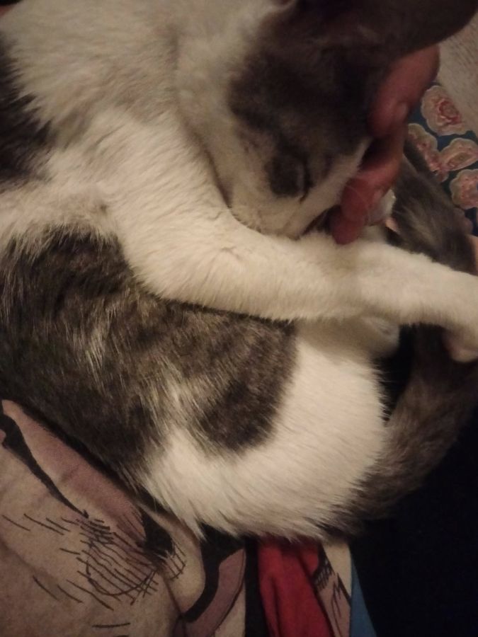 Il est très sociable, ronronne dès que l'humain approche, cherche l'affection. Sociable avec les chats et chiens