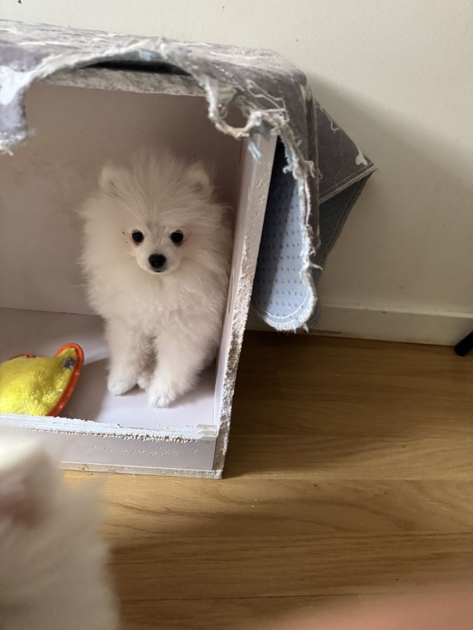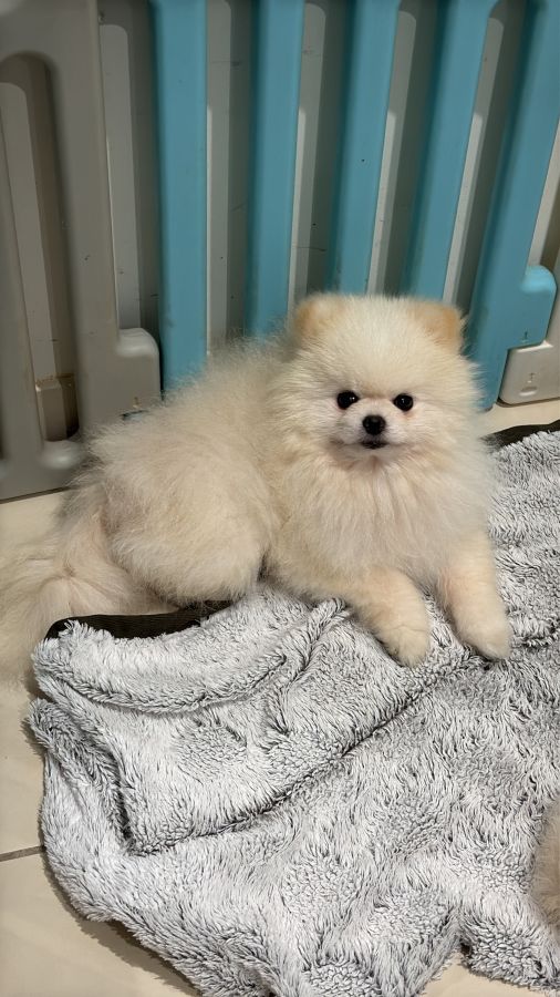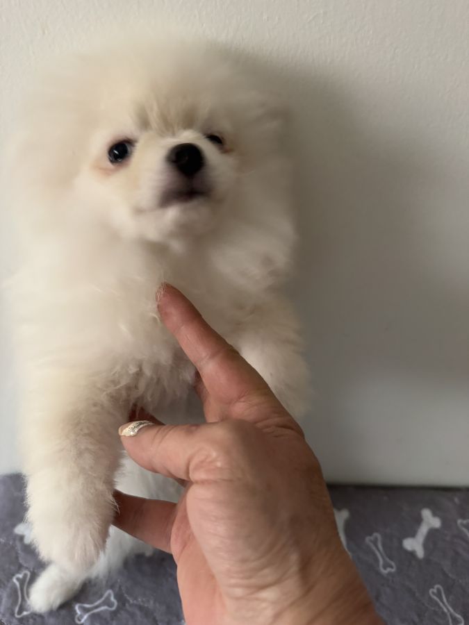 3 chiots spitz pomeranian mâles blanc crème , nés le 11/04/2025 et un né le 15/1012024 des même parents ( lof )sont disponibles