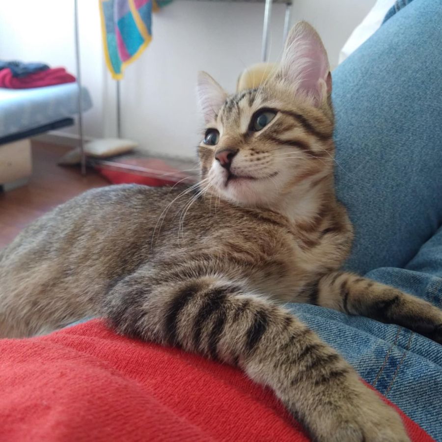 Très à l'aise avec de nouveaux humains, accepte très bien la compagnie d'autres chats, mais n'a jamais côtoyé de chien.
