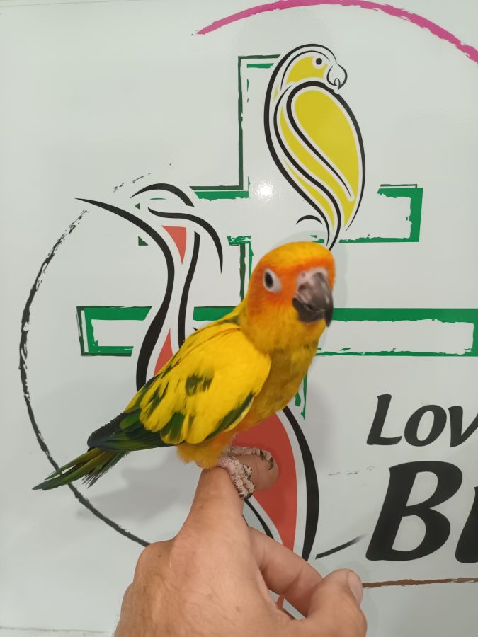 Jeune conure soleil sevré, élevé à la main, mâles et femelles disponibles.