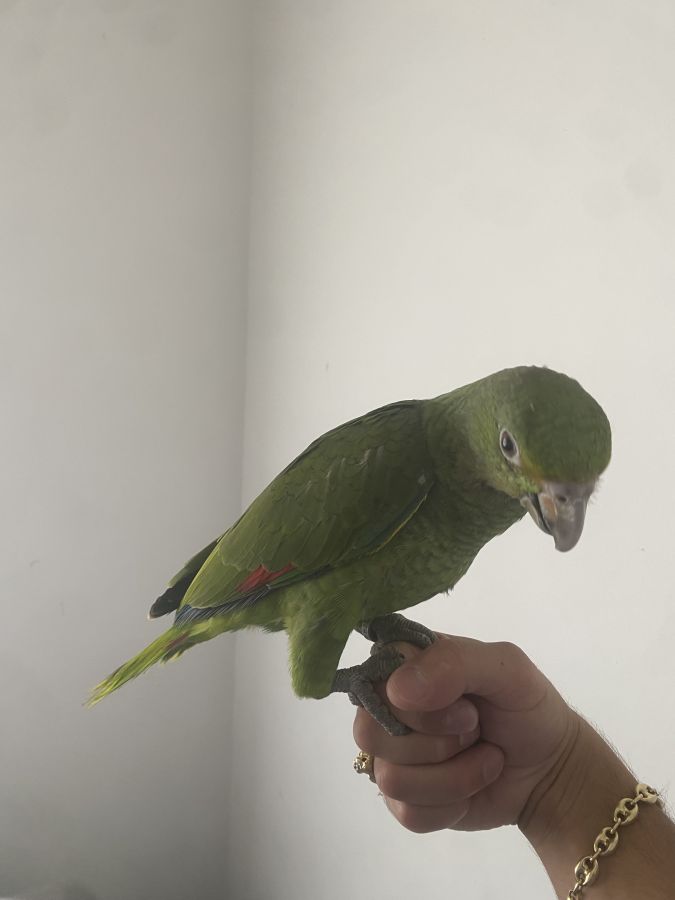 Jeune perroquet amazone nuque d’´or élevé à la main bague 2025 3 mo...
