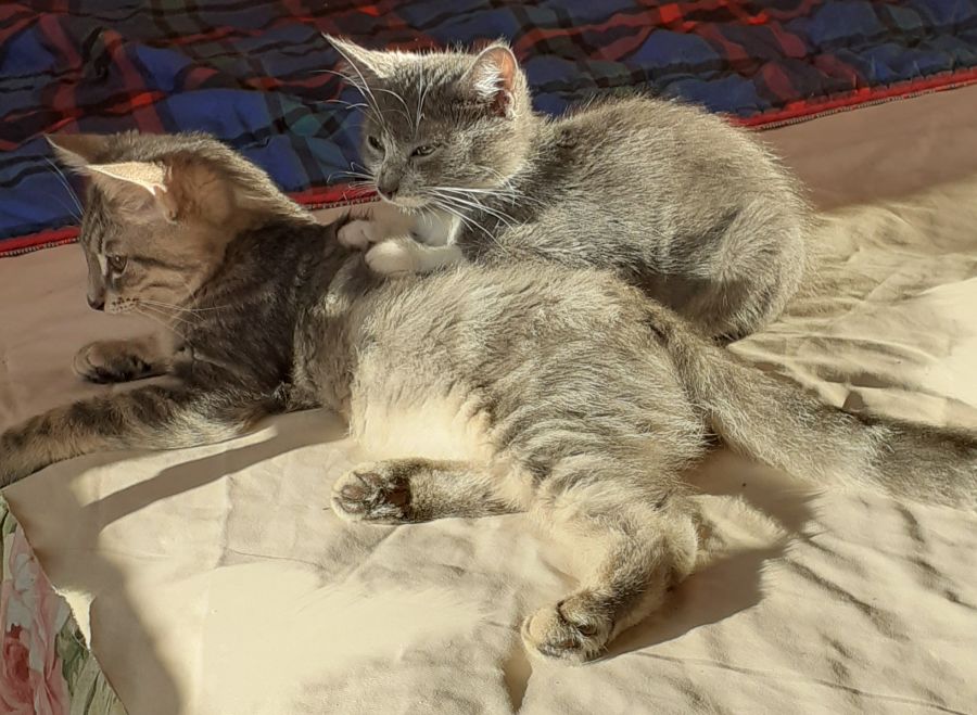A adopter 2 chatons frères de 3 mois1/2 mâles un gris et blanc , un tabby gris, joueurs, affectueux et sociables. A adopter ensemble