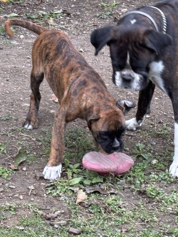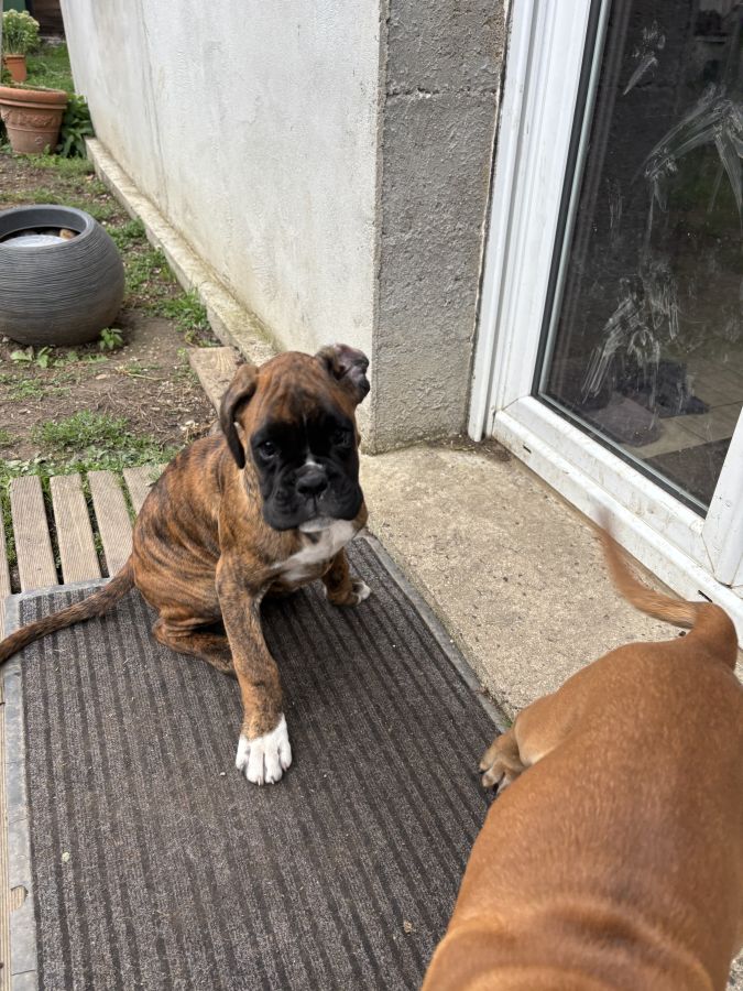 Sur une portée de 4 chiots de parents lof, 2 beaux boxers mâles, 1 fauve, 1 bringé clair de 10 semaines recherchent une famille accueillante.