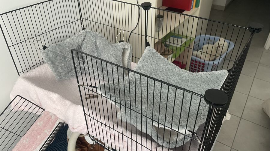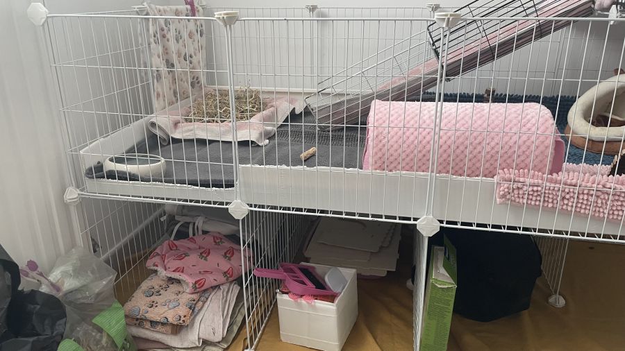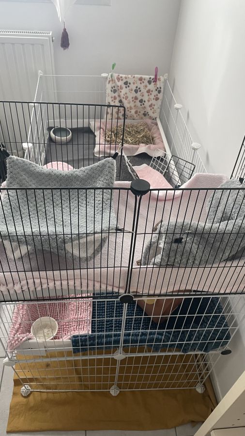 • Tous les accessoires : tapis de litière, bacs en plastique, gamelles, biberons, cachettes, petite maison en bois…