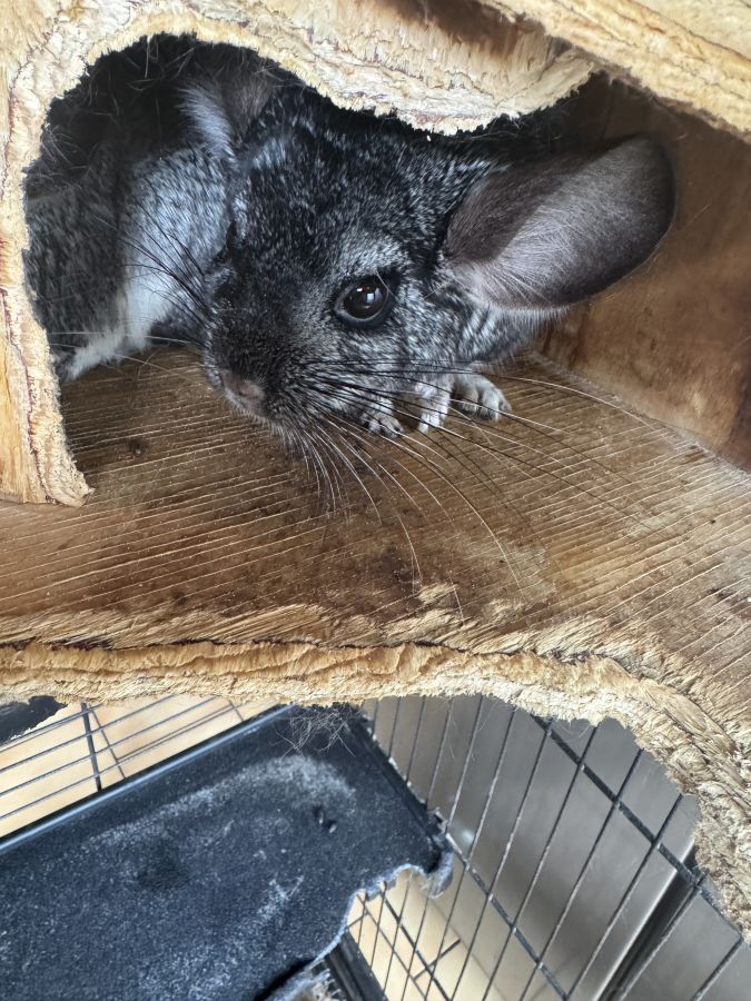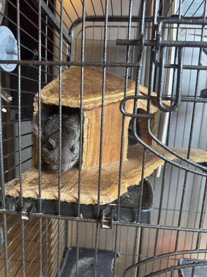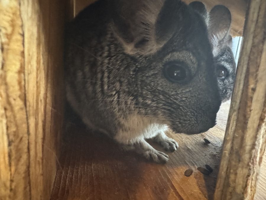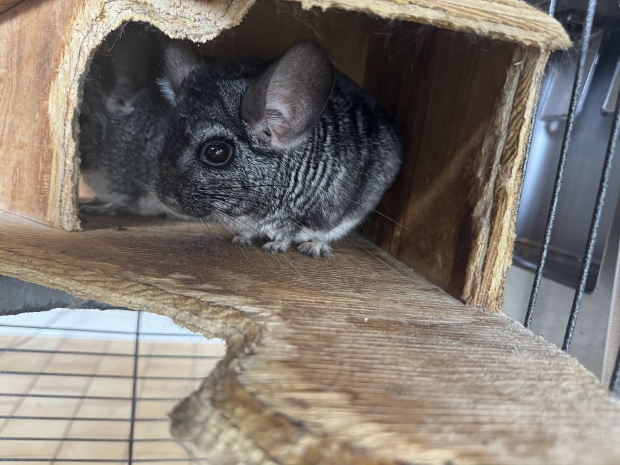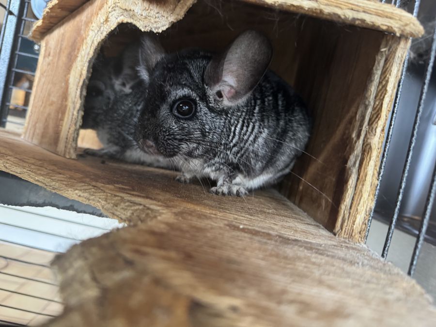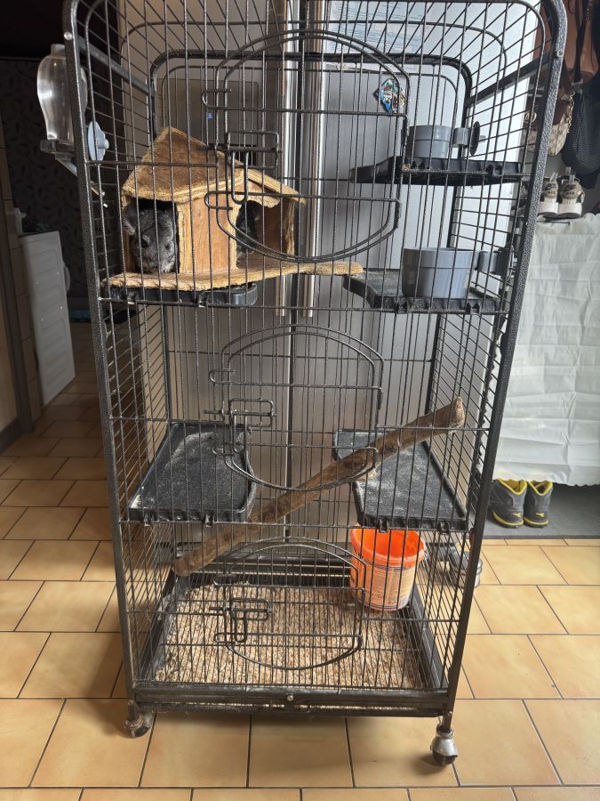 Couple de chinchilla dont un black velvelt Alfred de 5 ans et une femelle cocotte de 4 ans. Avec une grande cage , une cabane et les gamelles. La totalité pour 300 euros