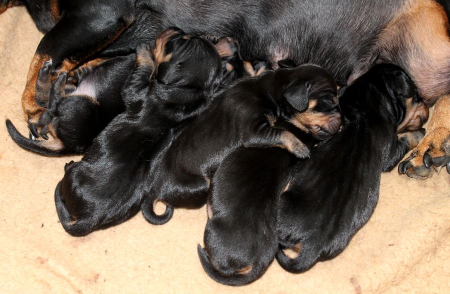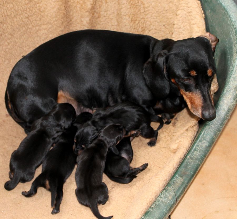 Chiots TECKEL Nain, poil court, Noir et Feu.